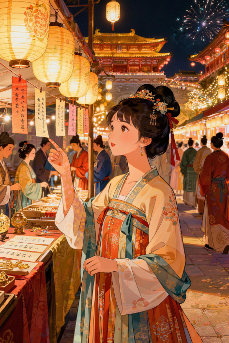 廊下悬灯谜百道,抽题计时,30秒内猜中即得通宝。五题连对,更添彩头。