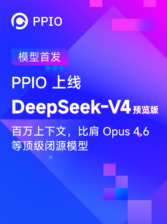24日,备受关注的DeepSeek-V4预览版正式推出并开源,包含DeepSeek-V4-Pro和DeepSeek-V4-Flash两个版本,分别提供比肩顶级闭源模型的旗舰能力和快捷高效的经济之选。中国全栈式AI云服务商PPIO第一时间全量首批上线,成为业内最快上线DeepSeek-V4的AI云平台之一,为企业与开发者带来百万超长上下文、顶尖Agent能力、超强推理性能的一站式开箱即用体验。